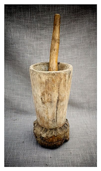 Oczywiście na wsi ziarno rozdrabniano i mielono także na własny użytek, przy pomocy prostych narzędzi takich jak moździerze (inaczej zwanej stępami ręcznymi), stępy nożne czy żarna. Najstarszym z wymienionych był moździerz. Składał się z kamiennej lub drewnianej, wydrążonej z pnia drzewa, czaszy i tłuczka. Jego wielkość zaś zależała od tego, czy przeznaczony był do pracy w pozycji klęcznej (lub siedzącej) czy stojącej. W pierwszym wypadku czasza była niższa, przekraczała jednak wysokość 15cm, w drugim – dochodziła do ok. 80 cm. Bardziej wydajnym urządzeniem była stępa nożna – jej konstrukcja wykorzystująca dwuramienną dźwignię, na zasadzie analogicznej do żurawia studziennego, umożliwiała bardziej efektywną pracę unosząc cięższy niż w moździerzu tłuczek na większą wysokość, a tym samym uderzając w ziarno ze znacznie, bo pięcio- a nawet dziesięciokrotnie, większą niż do tej pory siłą.